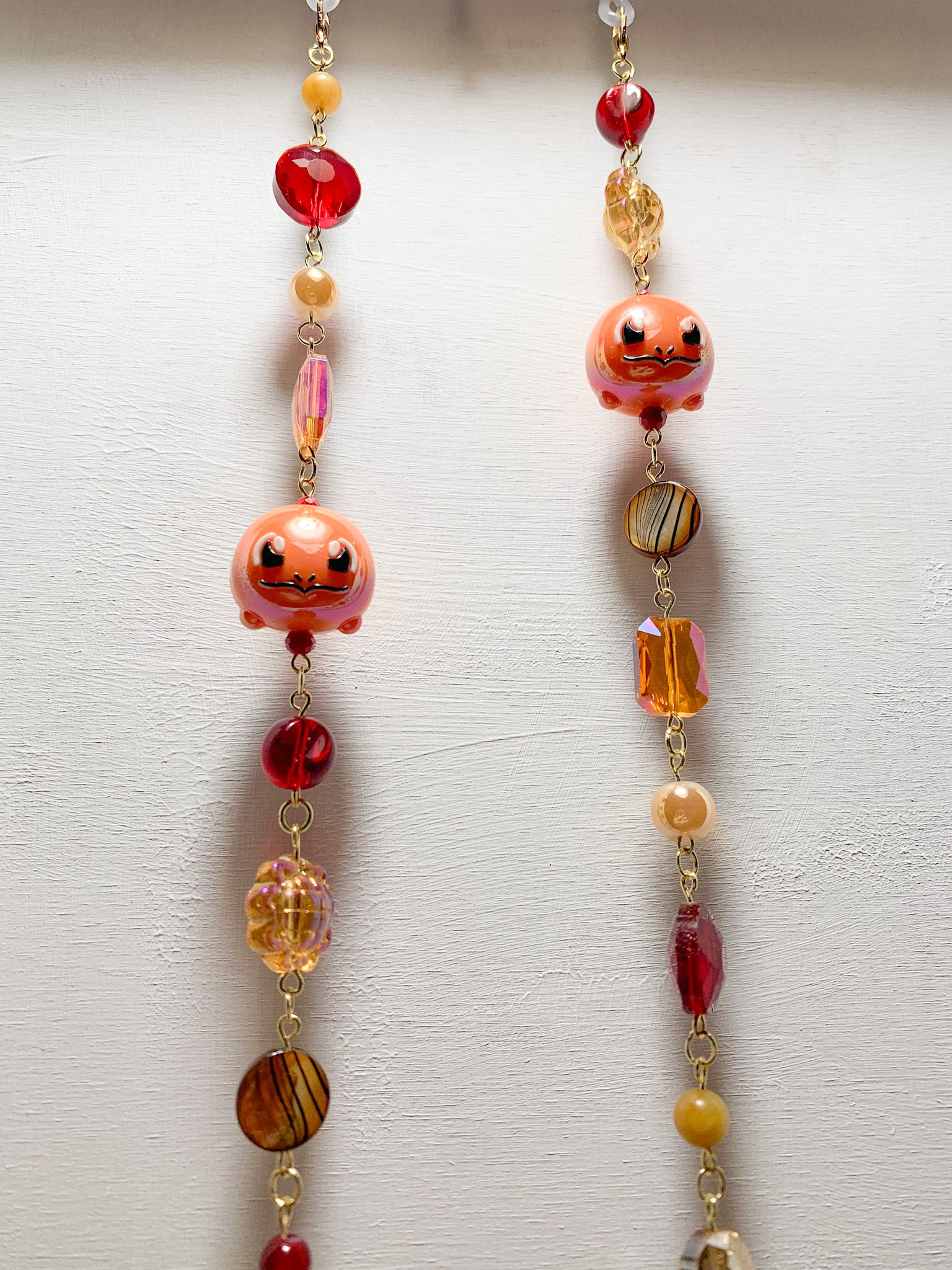 BID DADDY 'TENDO PLEASE DO NOT SUE ME. I am but a humble Beadle who found some 'emon beads and wanted to share my joy. Or just throw me in prison at this point it may be the most regulated I've been in years... ANYWAY, look at how cute these babies are! These chains are mostly comprised with glass beads and one specific acrylic piece if only you could guess which ones!! I would say these are definitely not "starter" chains I would say, they're perfectly manageable but if you're not used to the "statement" chains either practice today or scroll away <3