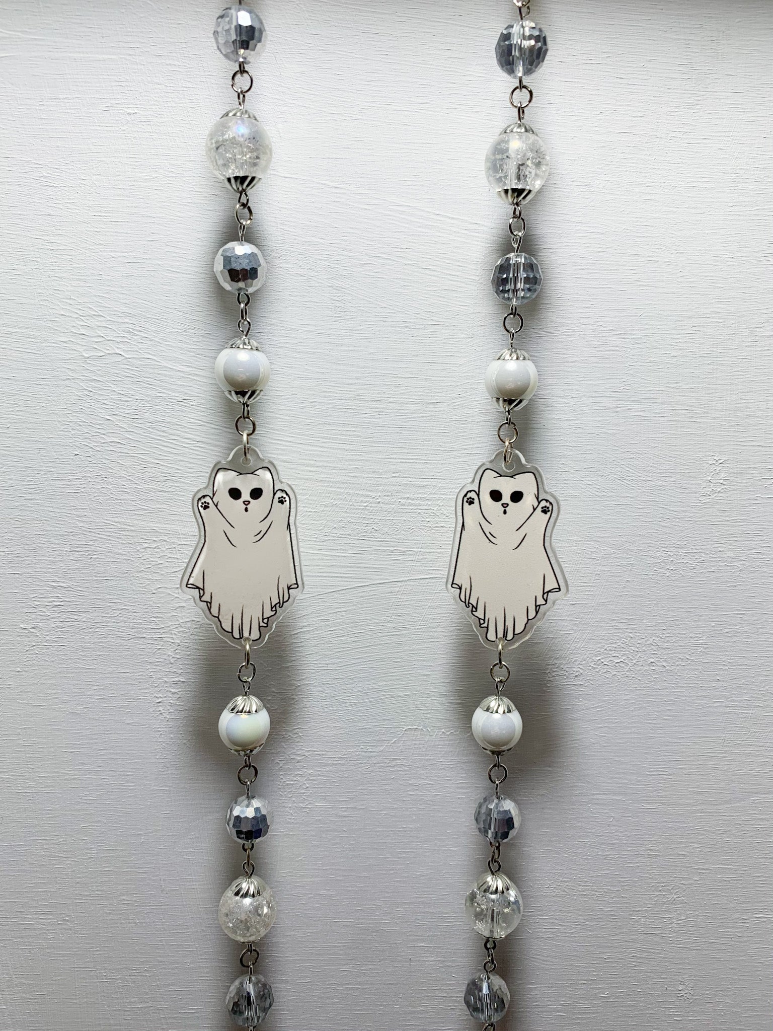 The ghost kitties are back, call ghostbusters if you need help catching them! These gentle ghosties flow so nicely as they blend acrylic features and glass beads, let these ladies guide you today <3